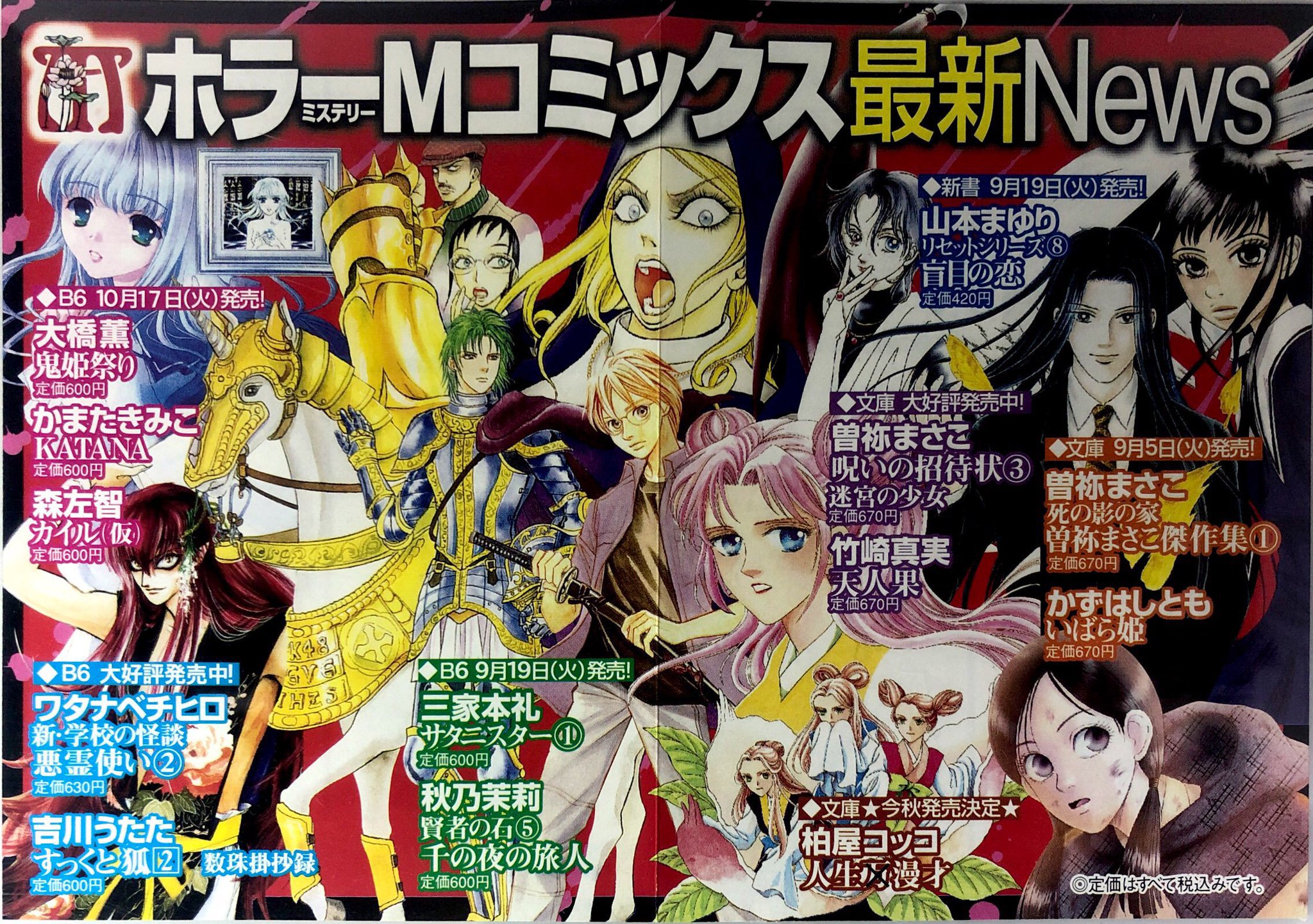 Sh Kam On Twitter 2006年9月 ぶんか社 ホラーmコミックス最新news かまたきみこさんのkatanaの1巻 大橋薫さんの 鬼姫祭り 三家本礼さんのサタニスター1巻 秋乃茉莉さんの賢者の石5巻など 新刊案内