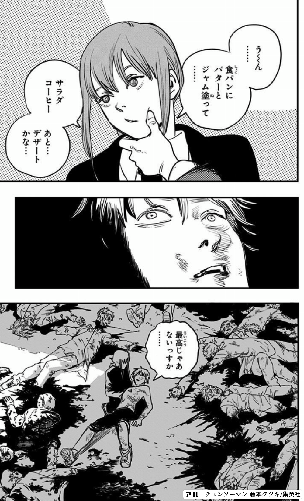 う ん 食パンにバターとジャム塗って サラダコーヒー あと デザートかな 最高じゃあないっすか チェンソーマン アル